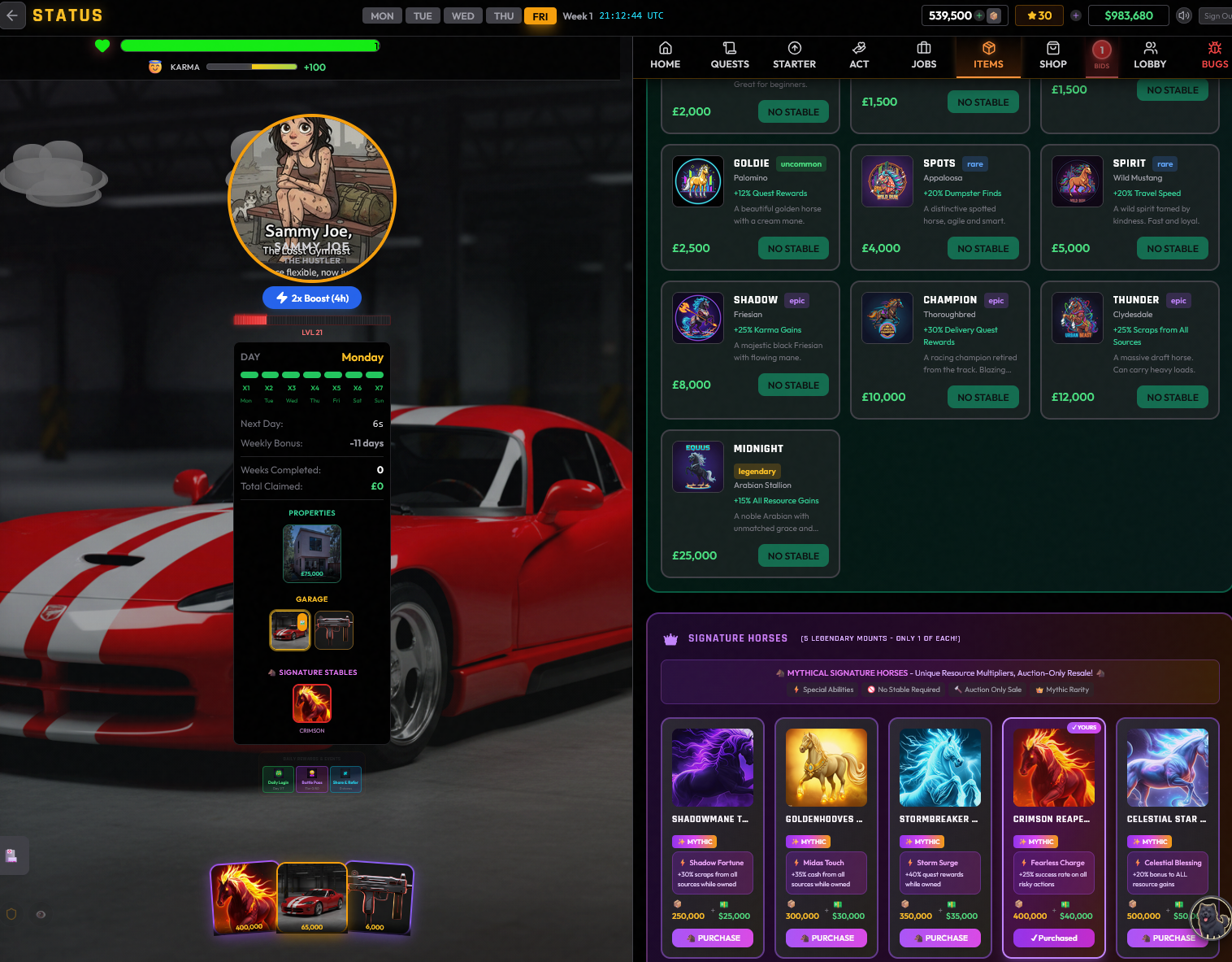 - Multiplayer Lobby โ See other players on a shared city map, trade items at auctions, and compete on leaderboards.